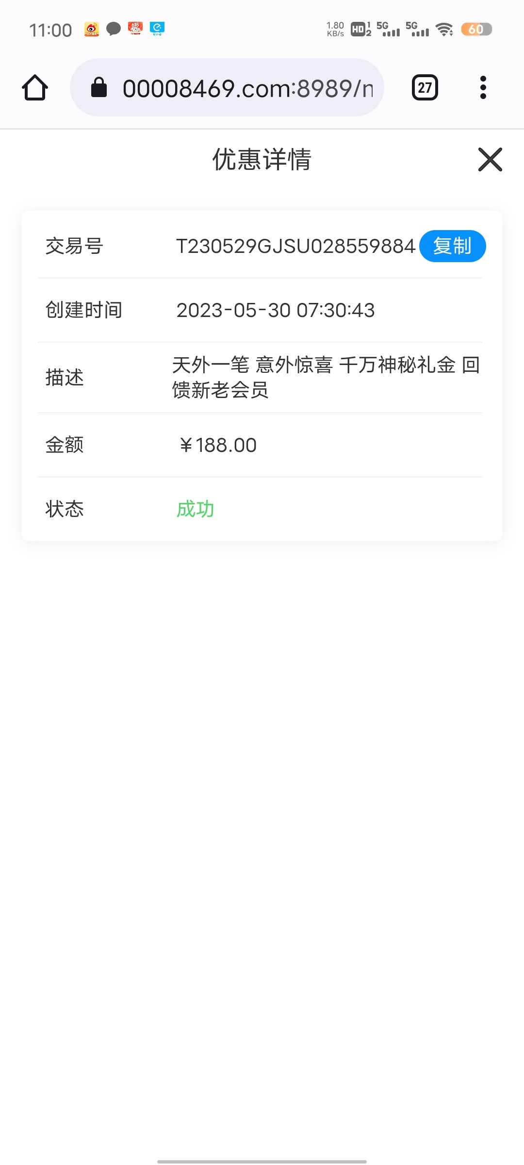 这一张图片,我在六个白嫖网都看到了,一模一样,笑的我肚子疼,这平台没有神秘彩金,他送这是电子打码彩金,我v3,21年玩的,不冲一分钱都不送,