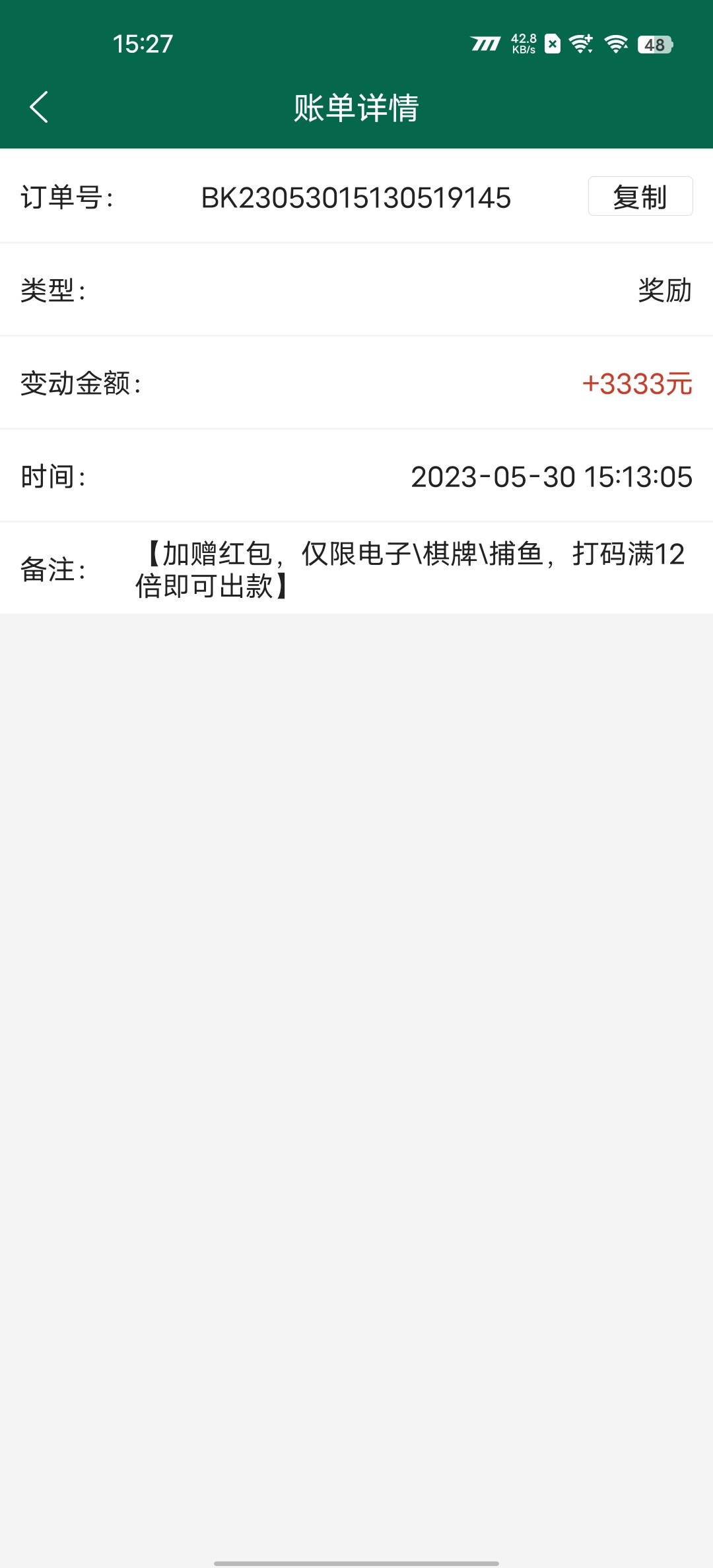 领了33.33加赠的豹子红包,要求12倍流水,限制电子,棋牌,捕鱼,哪个游戏好打流水