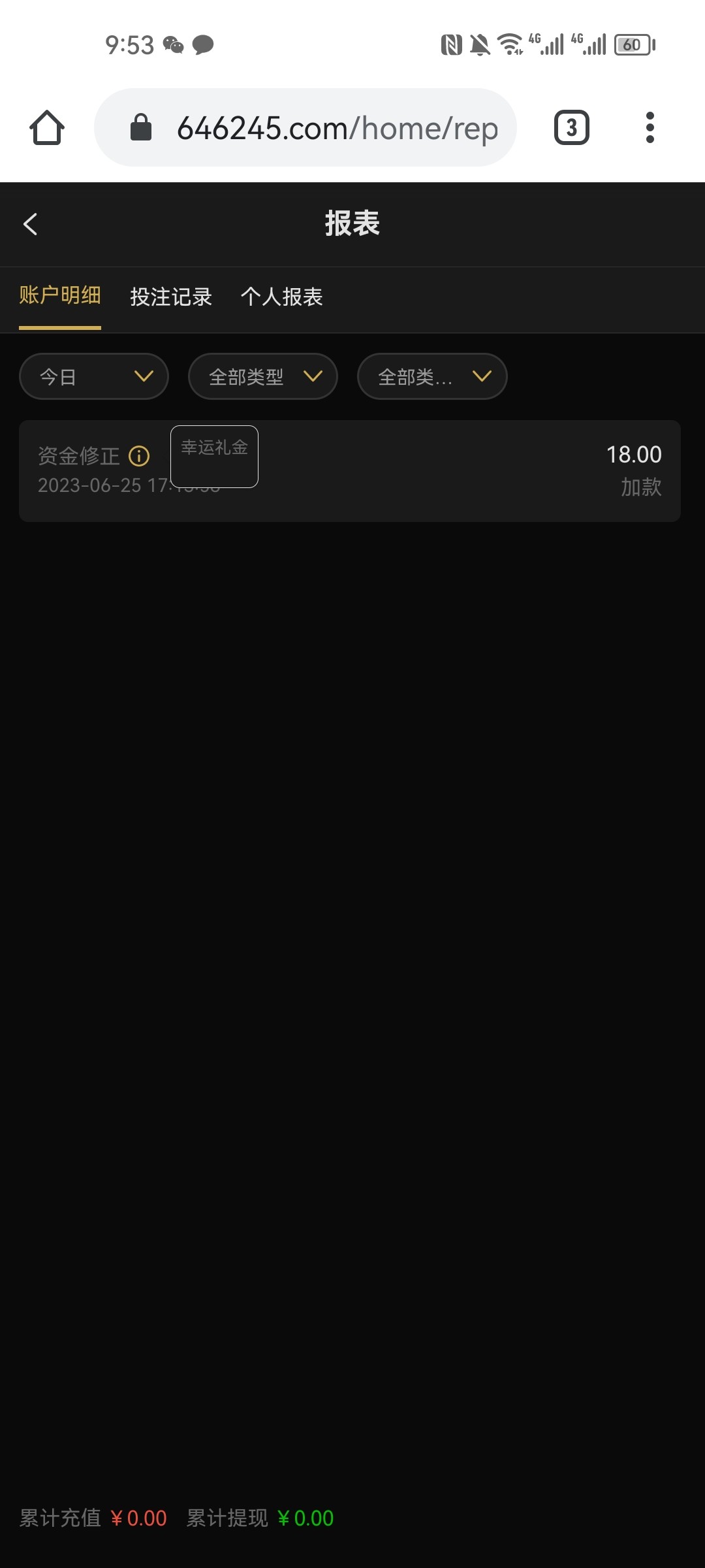 是18+18更新彩金,最低500提,我两个号都没有打出来,这平台垃圾得很