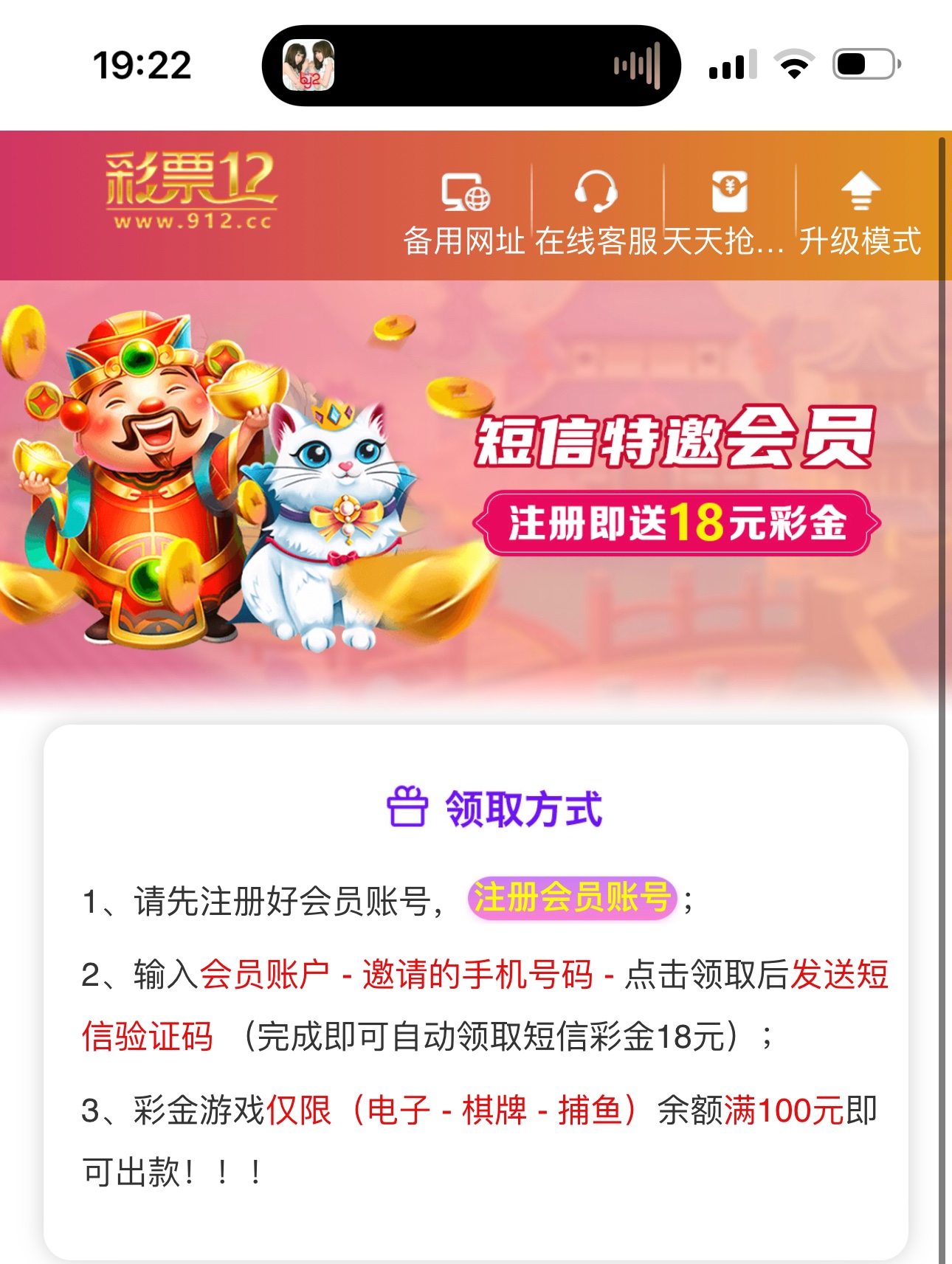 彩票12特邀秒18元彩金
