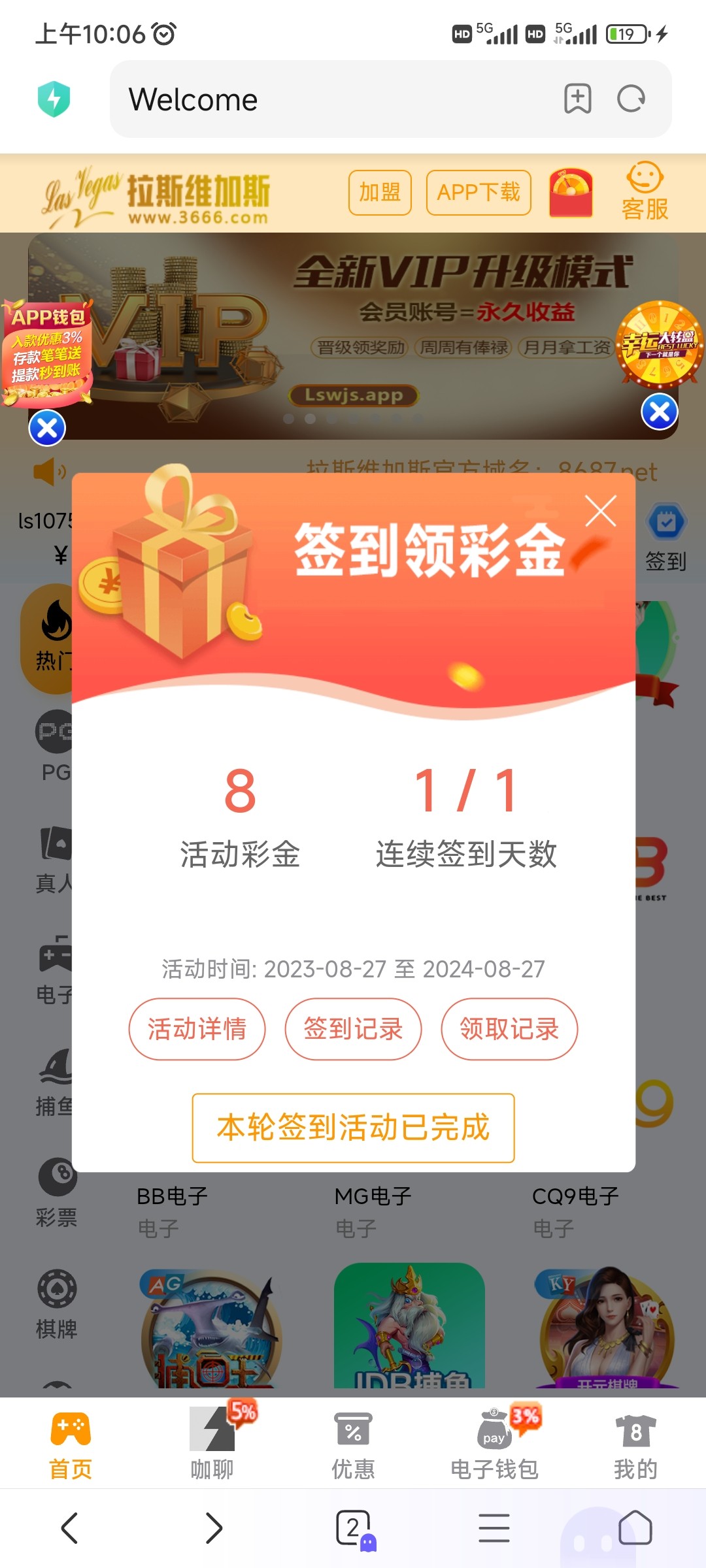 拉斯每天签到送8彩金