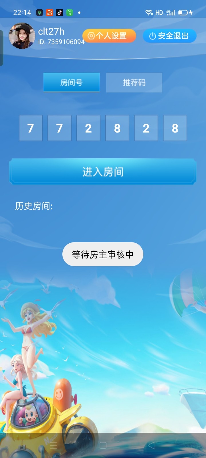 房号772828,两个房号都可以去碰