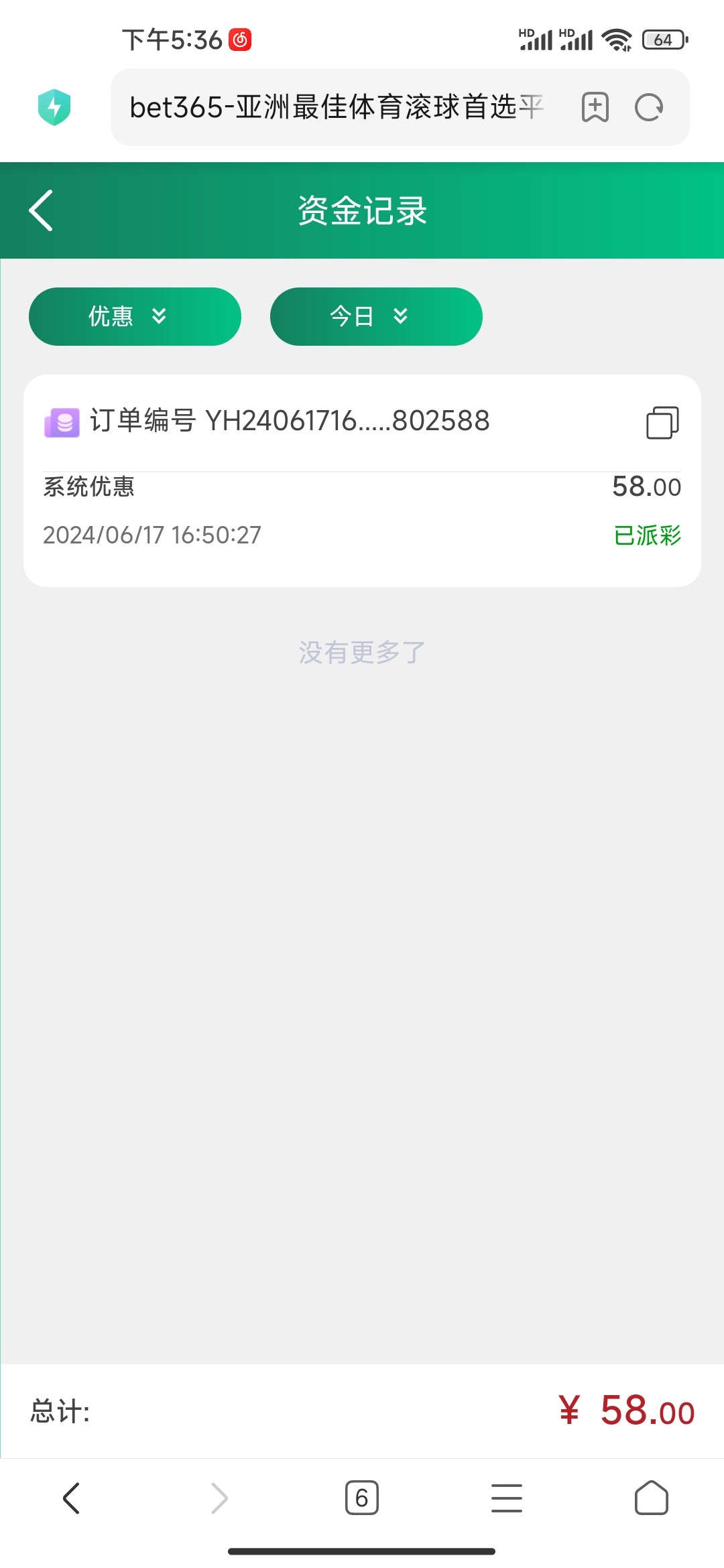bet365注册58元彩金