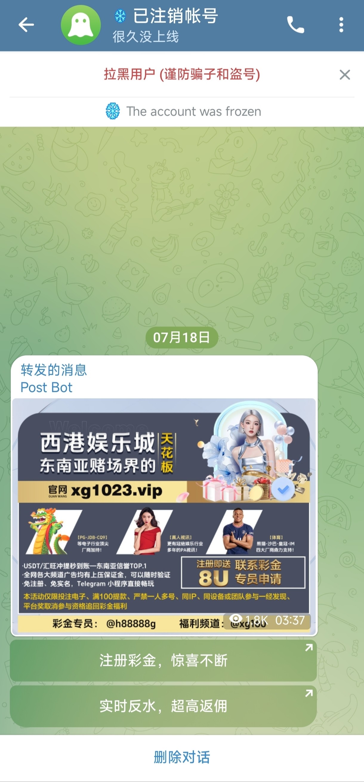 有tg的看看有没有这条机器人消息,没有的拿截图去看看能不能碰到