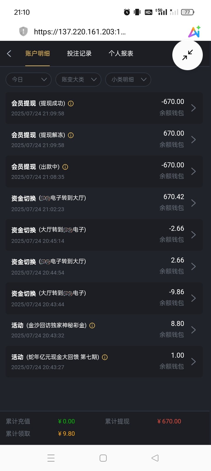 注册到现在,就半年前充值过100,我以为不给出,挺稳的