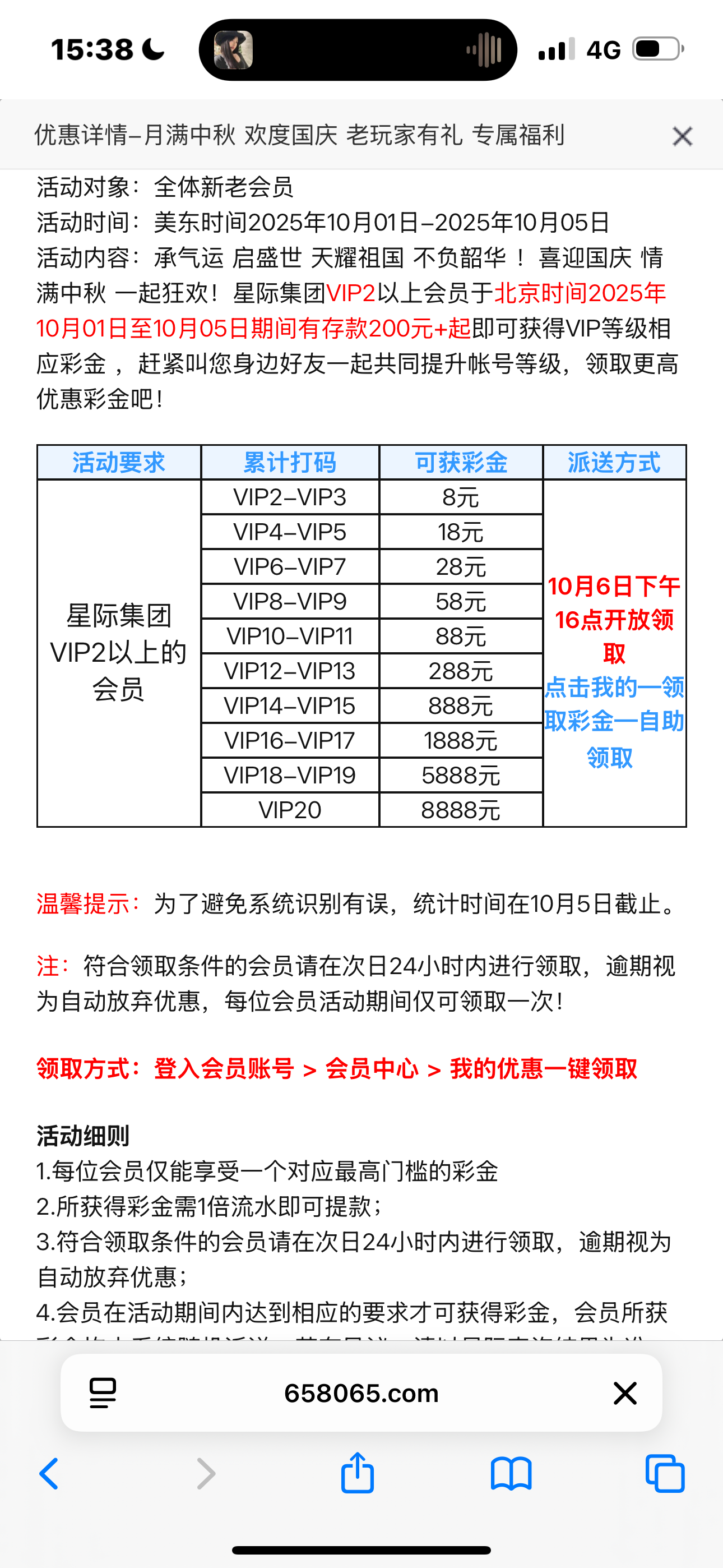 有等级的6点去领取彩金 658065.com