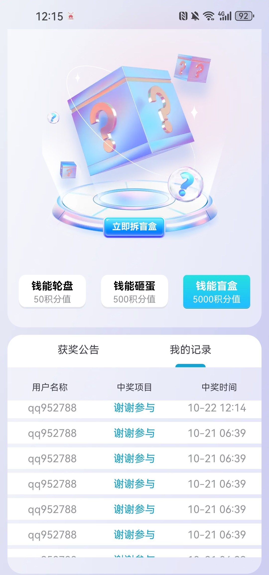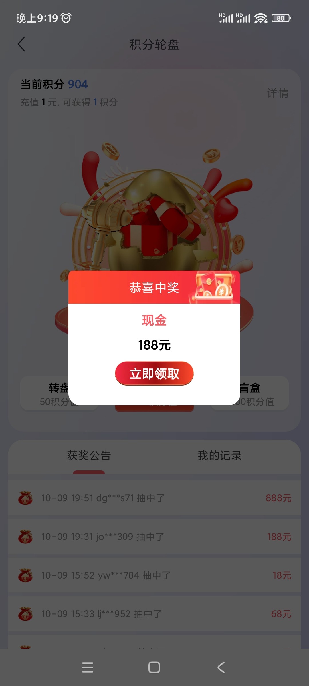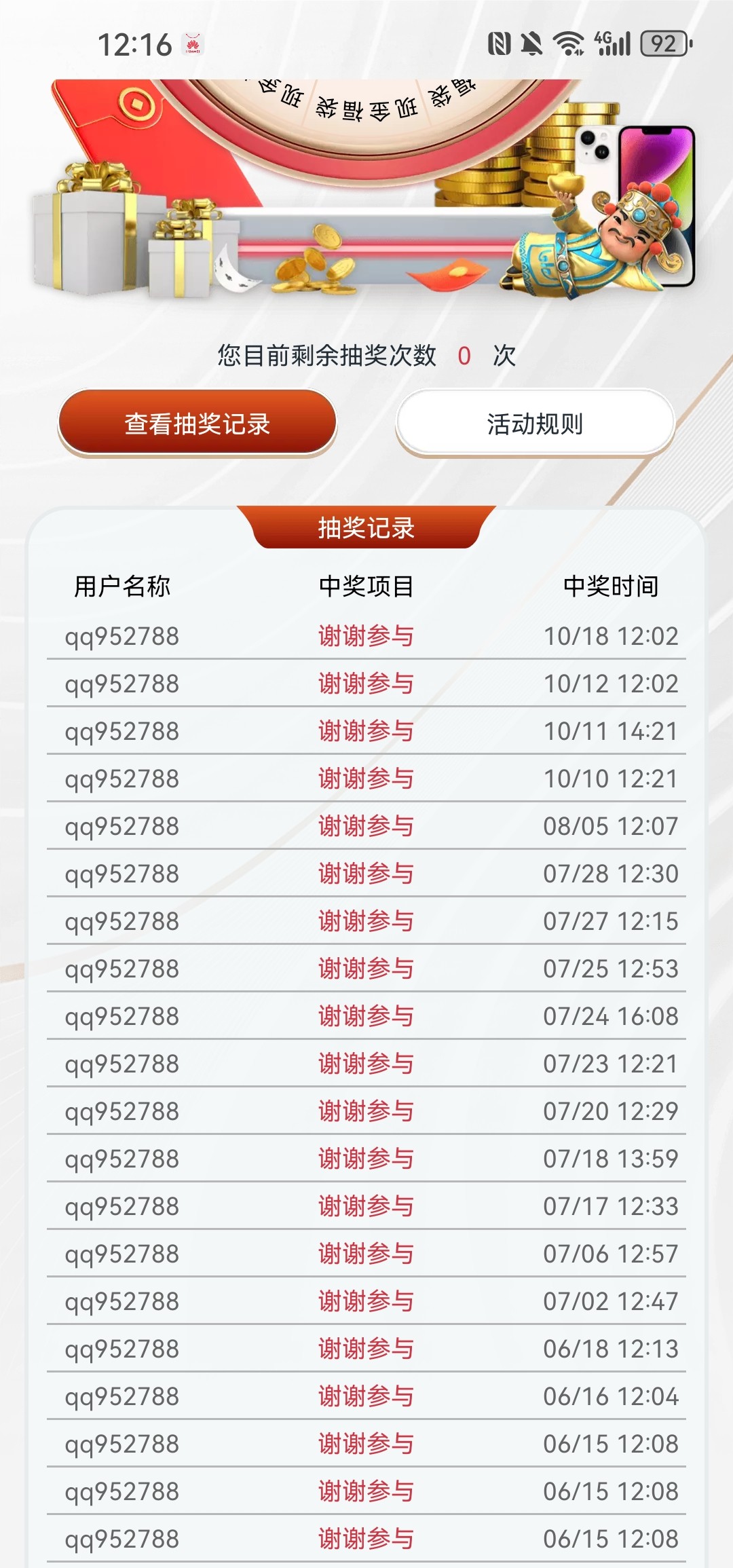 玩了这么久积分转盘抽奖从来没中过,太假了