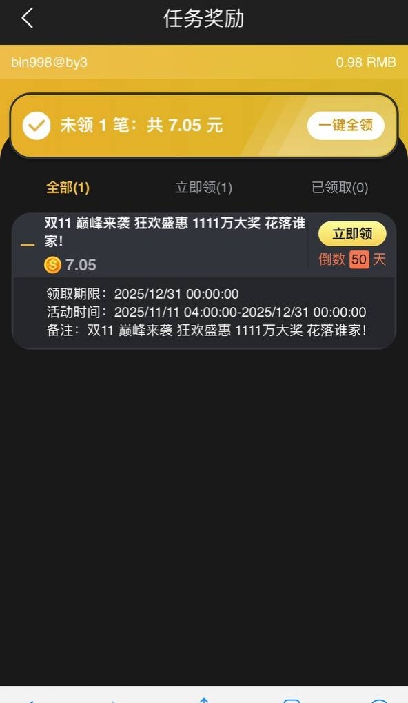 老用户有号充值过的登录领取双11回馈彩金,具体自测吧