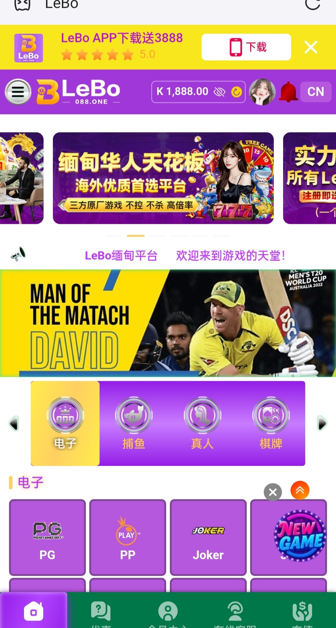 新用户注册秒1888彩金,彩金5倍流水没有限制具体自测吧
