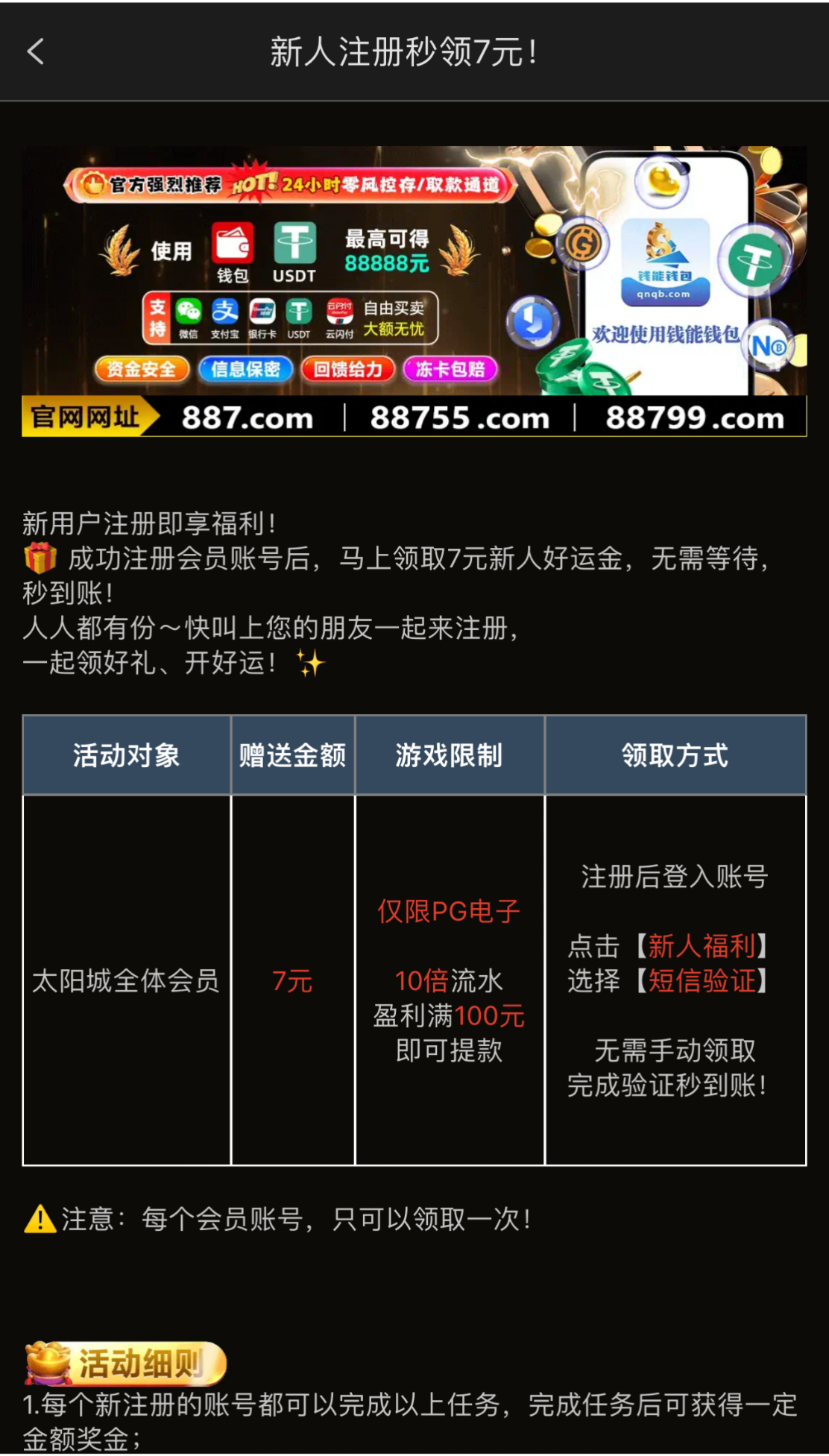 注册绑定手机号送7,出款自测。链接:887.com