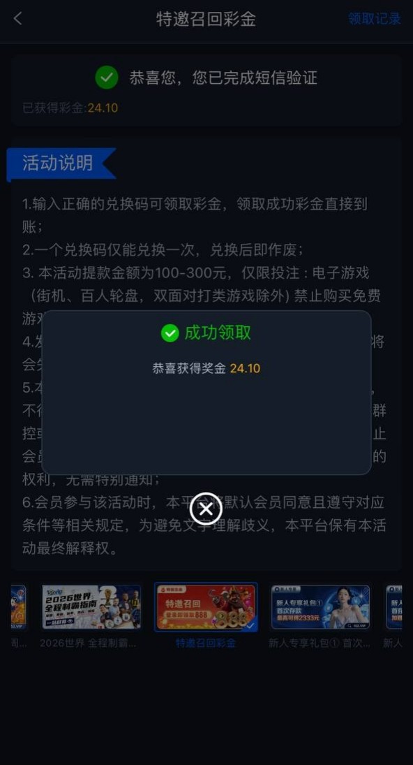 注册完善信息优惠找到短信验证领取特邀彩金有就有没有无视吧