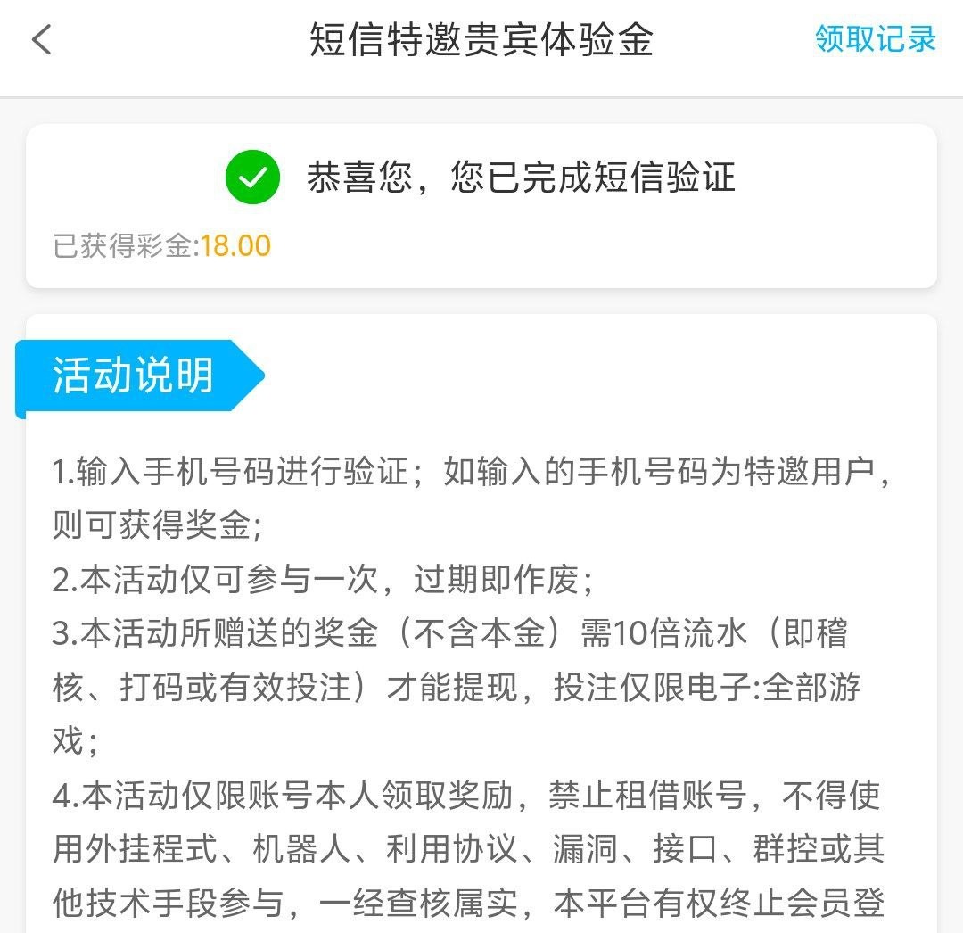新用户注册账号,优惠活动中找到特邀彩金自助验证没有无视吧