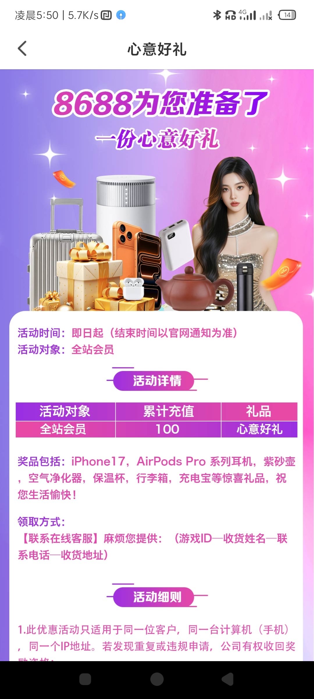 之前打首存充值了100,白嫖了一个充电宝