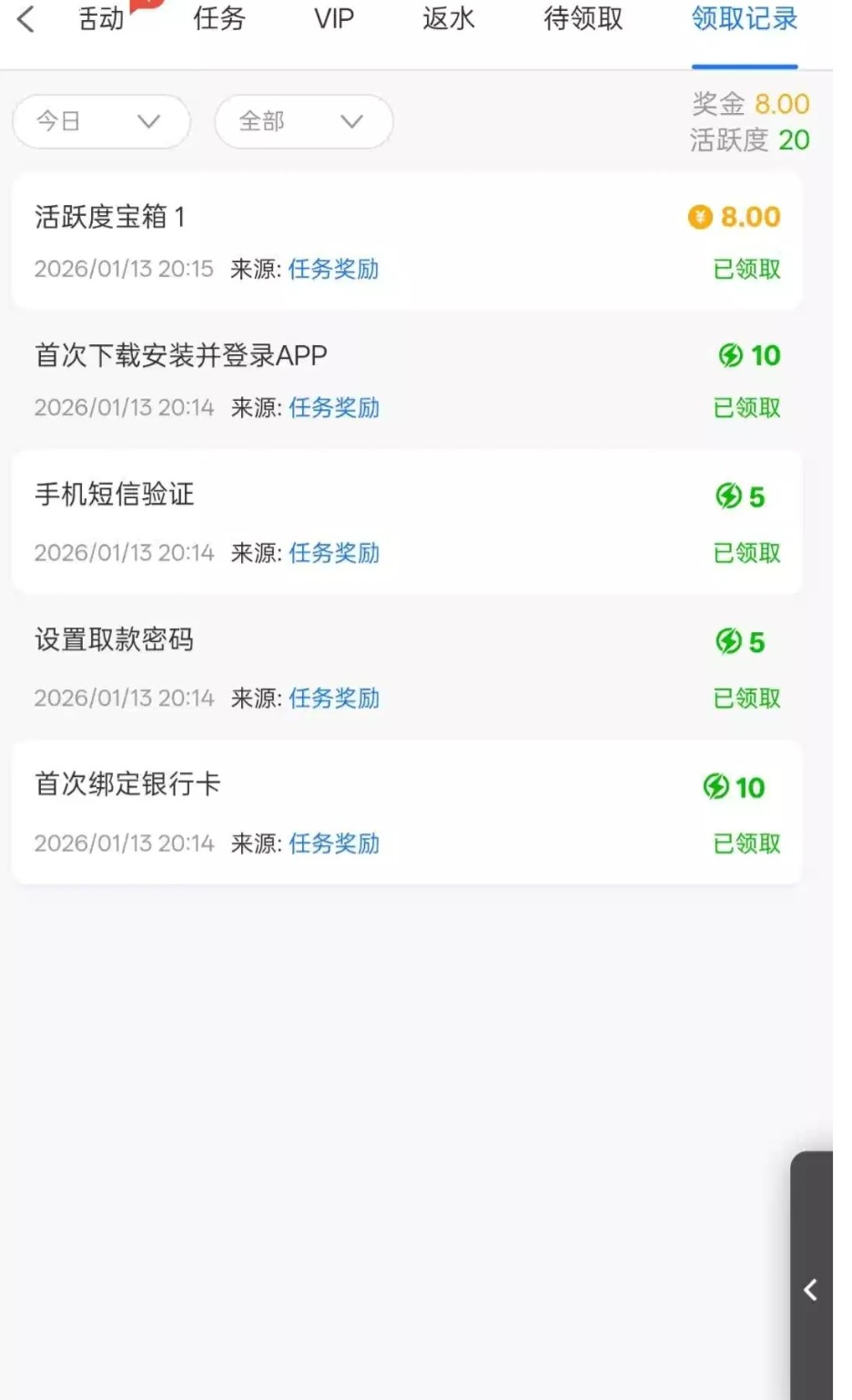 链接1266.app 完成任务开宝箱领取8彩金