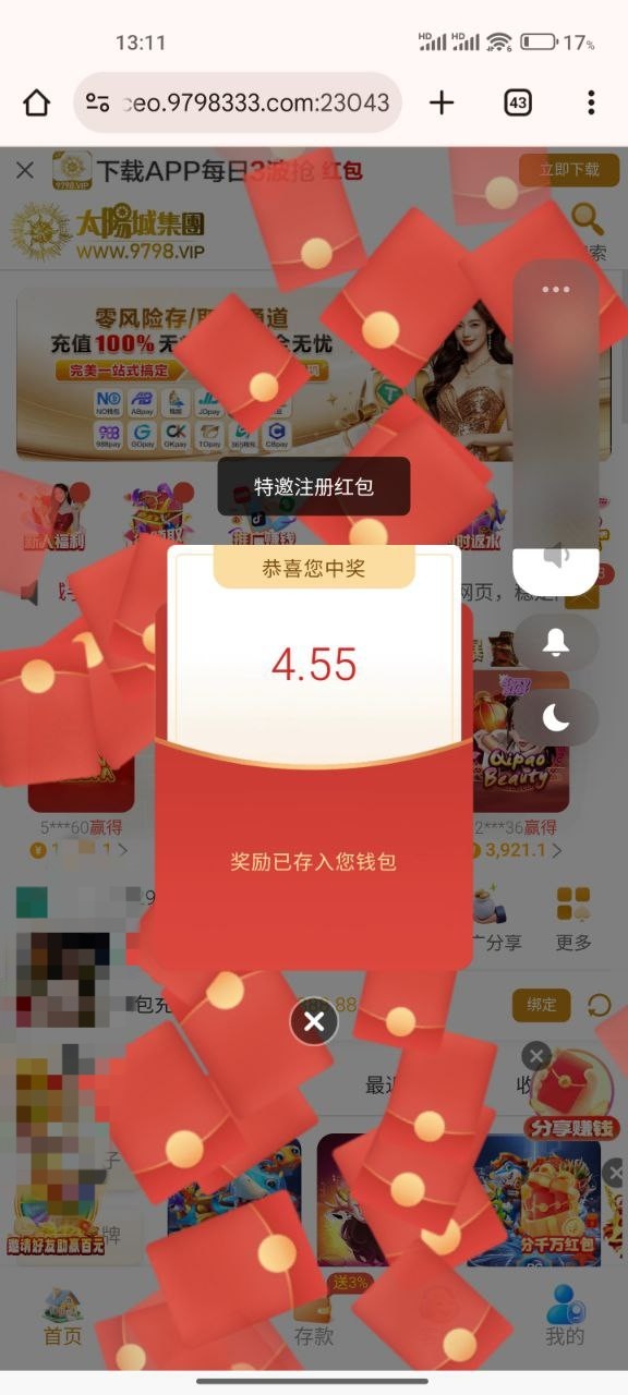 新用户注册直接弹窗红包彩金,有就有没有无视吧,具体自测吧
