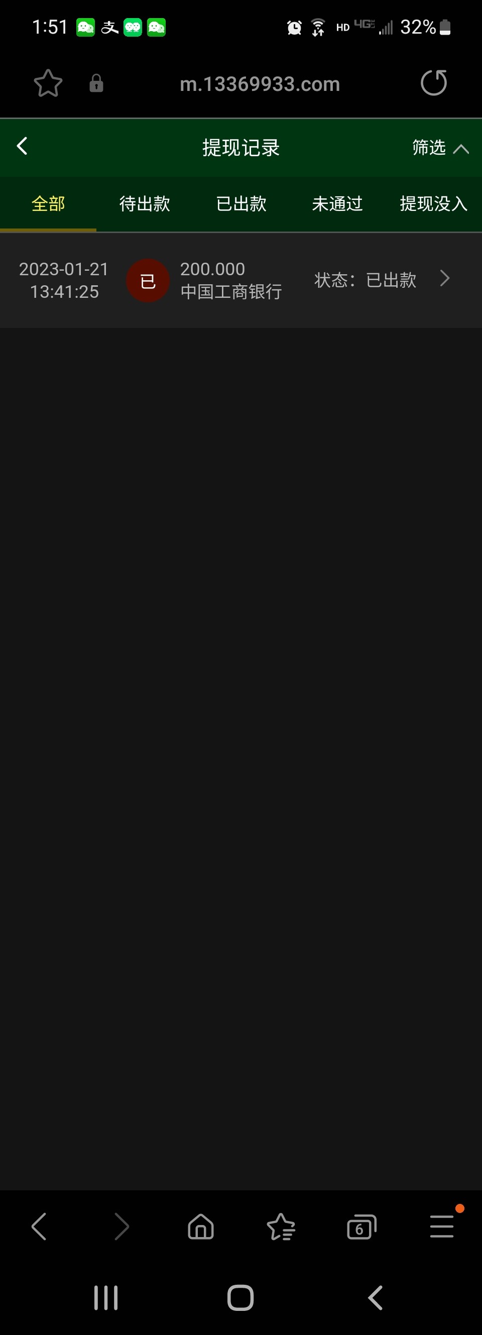 出款200已到账