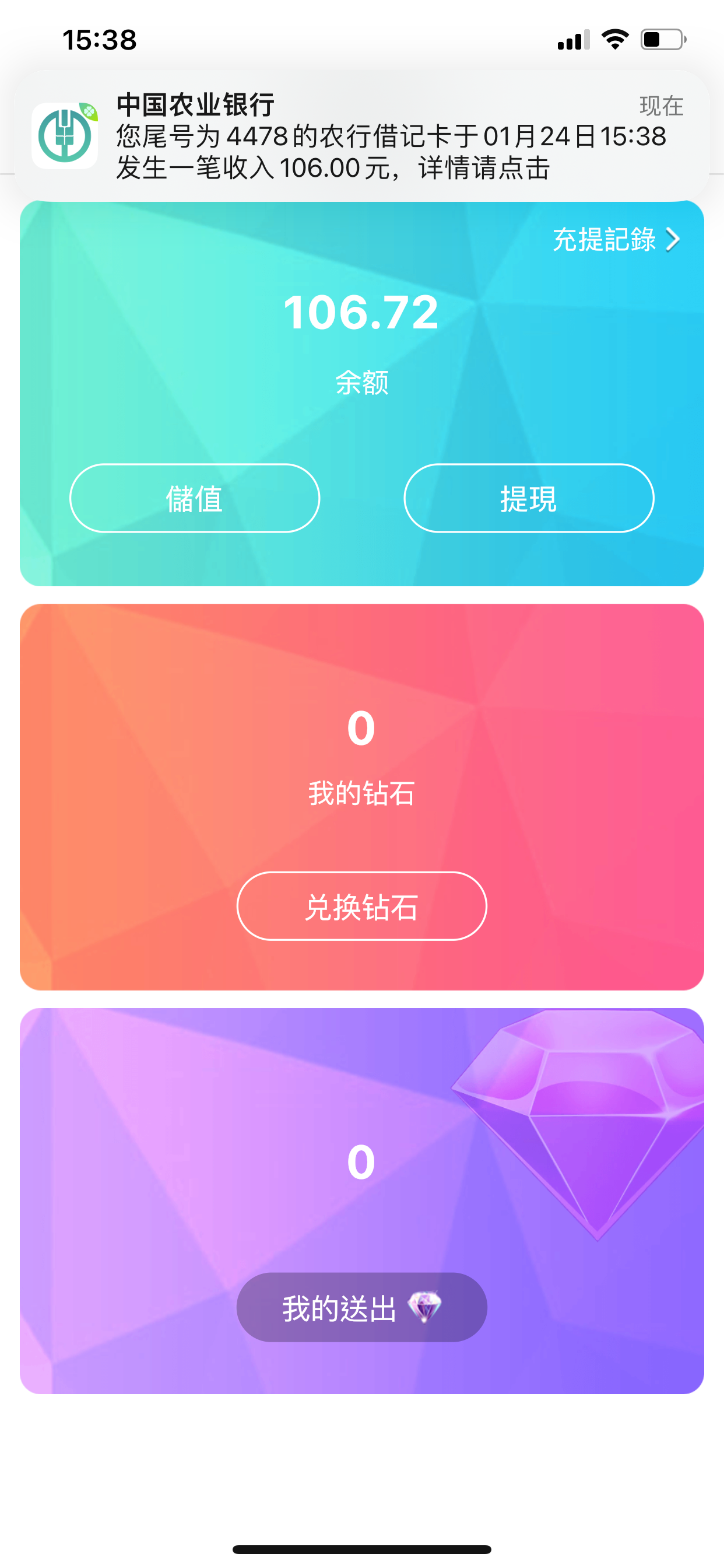 我没充值 没有 以前玩了好多黄播 卸载了 估计很多回馈 不知道网站