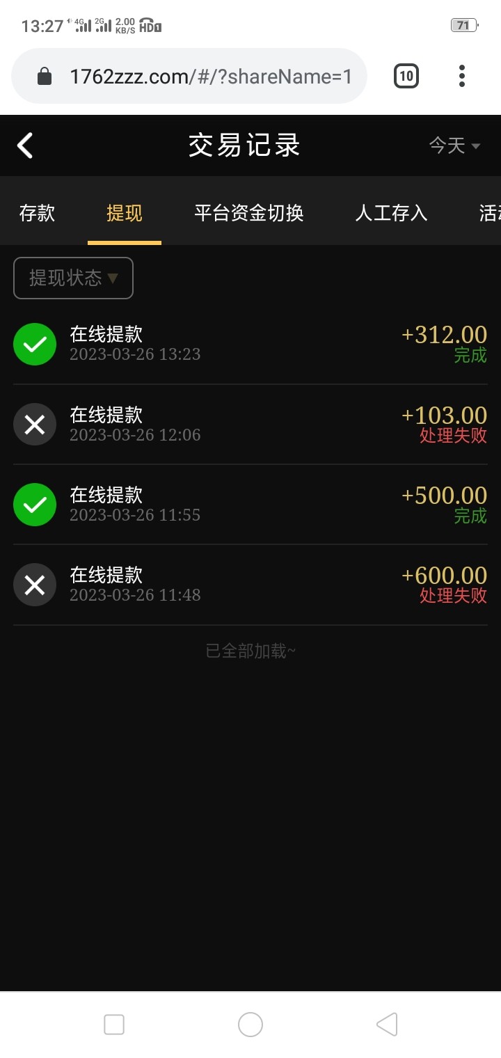 应该是只能提500 提600+拒绝了 提500秒了 多出来的余额他退回了 我又充值了50又提300 把前天9192黑款的钱打回来了