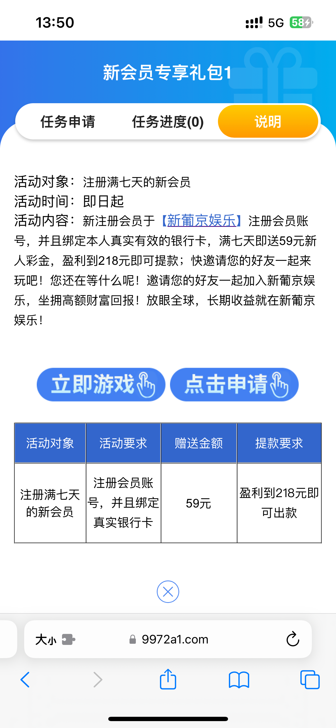 注册绑卡七天自助申请59