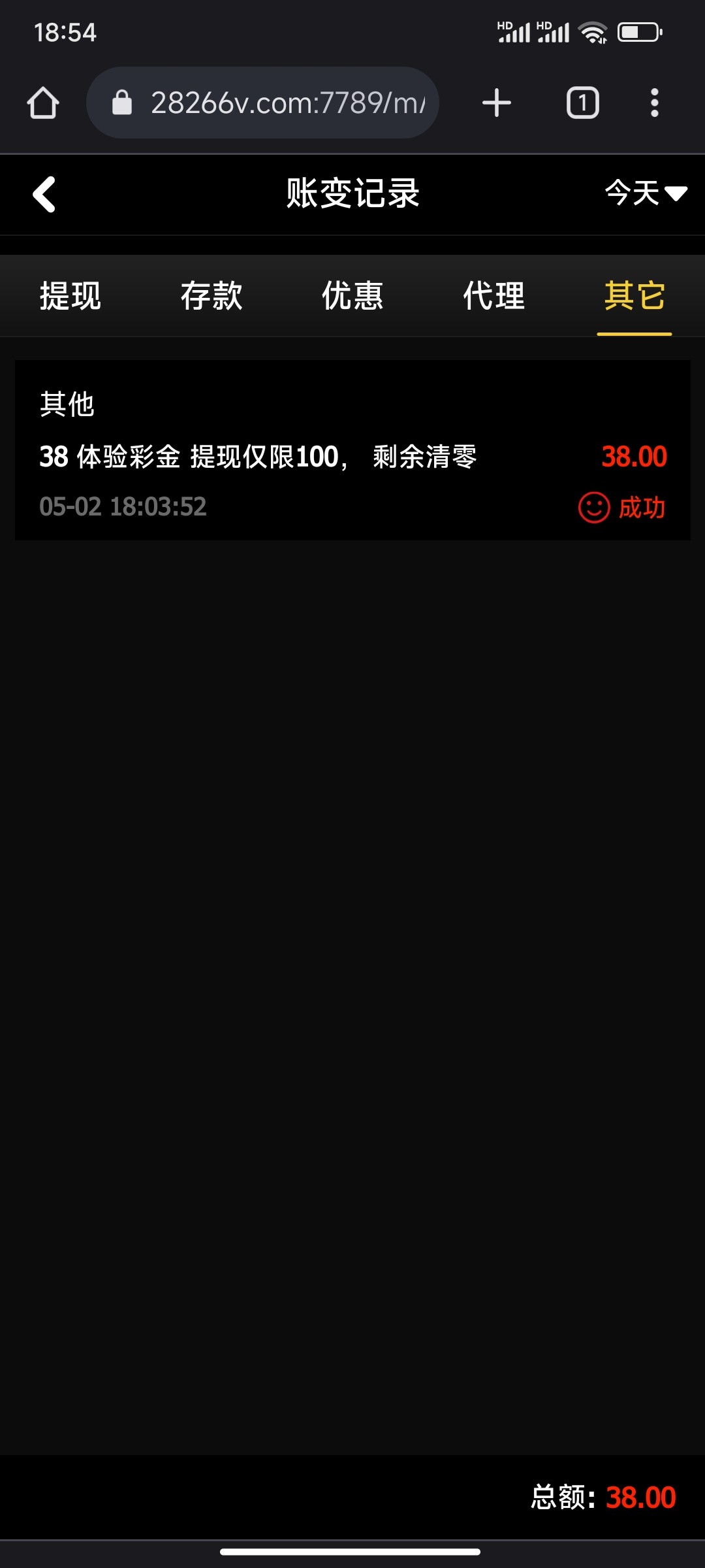 如题,之前有个老哥发过注册了,今天打电话过来送了38,可惜只能提100,网址789v.com,注册就行不用绑卡。留意电话就ok。