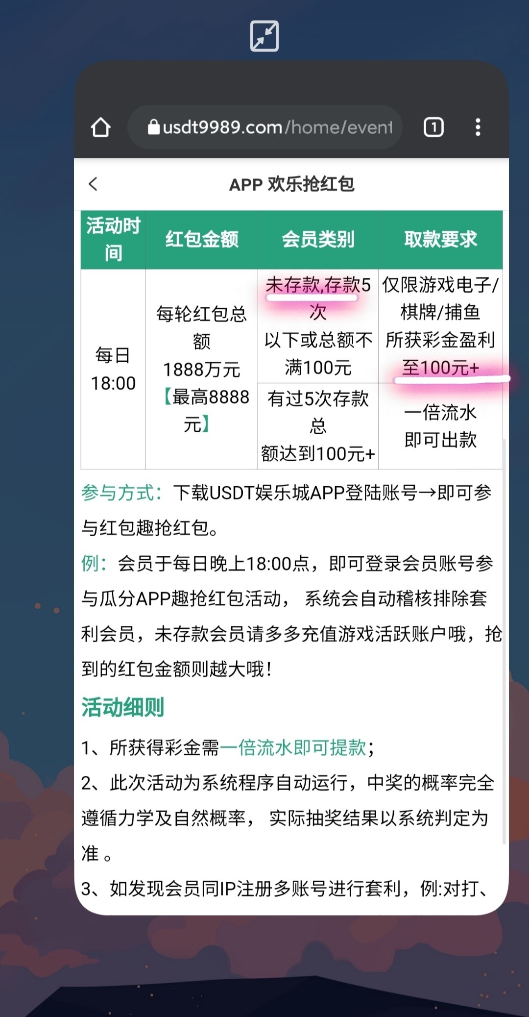 未充值的也可以,每天18:00抢红包,满一百出。新出来的活动,不知道红包还可以。网址看图。