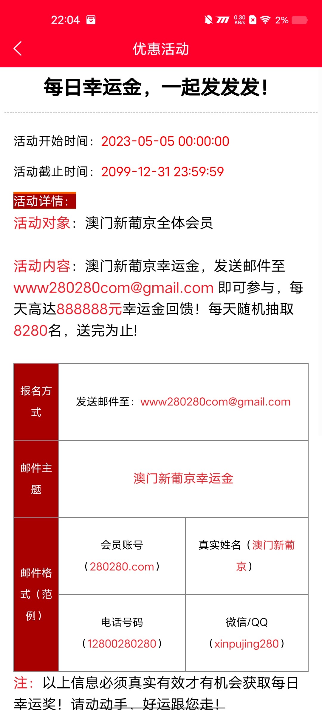 989.com大发的邮箱彩金给了,这个280.com的新葡京也可以申请看看